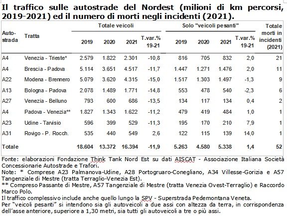 Autostrada A4 a Nord Est – Record di mezzi pesanti e 32 vittime nel 2021