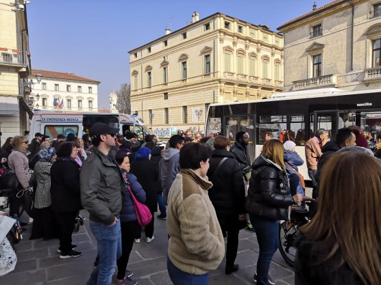 NOTIZIA IN AGGIORNAMENTO —-> Un autobus ha investito poco fa un bambino in piazza Castello. Nelle nostre immagini, i primi concitati momenti dopo l’investimento. Dalle prime frammentarie notizie sembra che il bambino, di 2 anni circa, sia stato investito mentre attraversava la strada col nonno, non si sa se per una svista dell’autobus o perché sfuggito al controllo del parente. Il piccolo è stato portato all’ospedale in codice rosso. Ora è ricoverato in gravi condizioni in terapia intensiva pediatrica. Pare che non sia in pericolo di vita ma ha riportato gravi lesioni agli arti inferiori. In particolare avrebbe un piede rimasto gravemente ferito dallo schiacciamento, un’altra ferita ad una gamba. Il bimbo è sempre stato cosciente.
