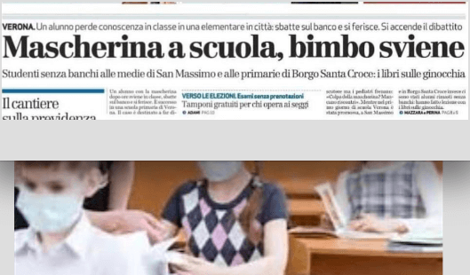 Poi Affari Italiani ha ricostruito la storia contattando il Ministero dell’Istruzione che ha dato la versione dei fatti ufficiale, confermata e molto differente. Innanzitutto non si trattava del primo giorno di scuola (quindi non il 14 settembre), ma della settimana precedente quando in quell’istituto avvenivano le giornate di pre-accoglienza. Inoltre, il dispositivo di protezione non c’entra nulla: il bambino, infatti, non ha indossato la mascherina durante la permanenza all’interno dell’Istituto (esattamente come dice il protocollo in fase di staticità, cioè quando si è seduti in classe). Insomma, si è trattato di un malore improvviso, non riconducibile all’uso della mascherina, utilizzata solo in alcuni frangenti di quella mattinata. Alcuni siti di informazione, dopo la smentita ufficiale del Miur, hanno rimosso la notizia, mentre in altri, anche nazionali, è ancora presente.