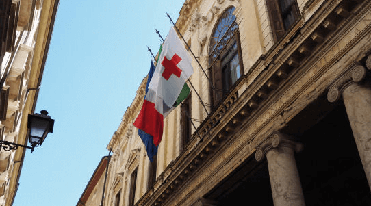 Bandiera della Croce Rossa a Palazzo Trissino