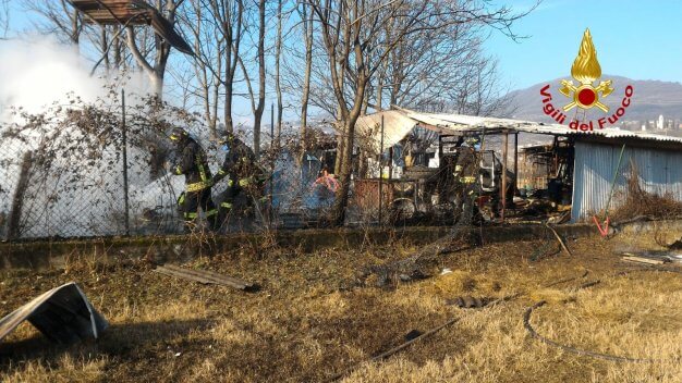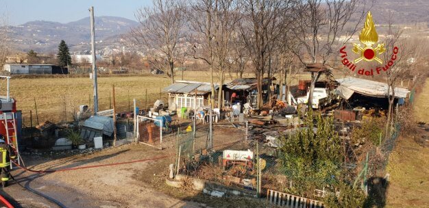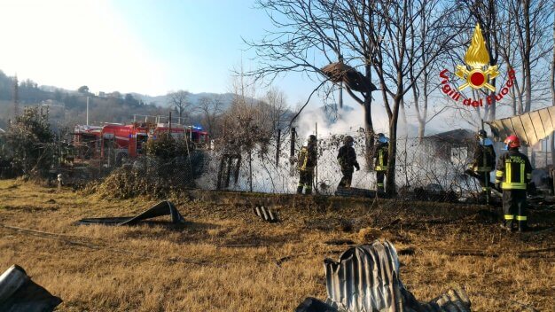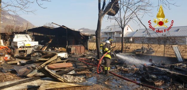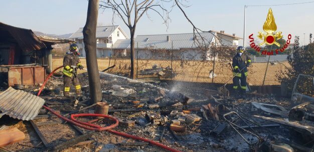 Alle 13.15 di oggi, i vigili del fuoco sono intervenuti per un incendio di una baracca in una zona recintata di circa 500 mq, adibito a ricovero mezzi agricoli e masserizie in via San Martino a Cornedo Vicentino. Alcune bombole gpl sono rimaste coinvolte nelle fiamme e due sono scoppiate proiettando lamiere a molta distanza: nessuna persona è rimasta ferita. Le squadre dei pompieri accorse da Arzignano, Schio e Vicenza con cinque automezzi antincendio e dodici operatori hanno spento il rogo, riuscendo a raffreddare altre bombole che si trovavano all’interno della struttura in lamiera. Le fiamme hanno distrutto parte del materiale depositato all’interno e all’esterno tra cui un veicolo commerciale andato bruciato. Le cause dell’incendio sono al vaglio dei tecnici dei vigili del fuoco. Sul posto la polizia locale e i carabinieri. Le operazioni di soccorso sono proseguite fino al tardo pomeriggio.
