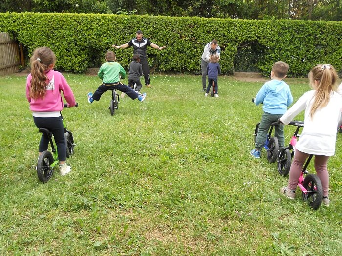 Gli esperti del progetto hanno coinvolto tutti i bambini dai tre ai cinque anni attraverso attività motivanti: visione del simpatico video esplicativo “Daydreaming in Italy”; racconto della storia “Giulia e la bicicletta magica”; smontaggio e rimontaggio delle parti della balance bike. E soprattutto attraverso l’allenamento effettivo: varie andature; manovre agili; movimenti per consolidare l’equilibrio e la coordinazione; strategie per affrontare percorsi diversificati nella palestra e nell’ampio giardino della scuola.