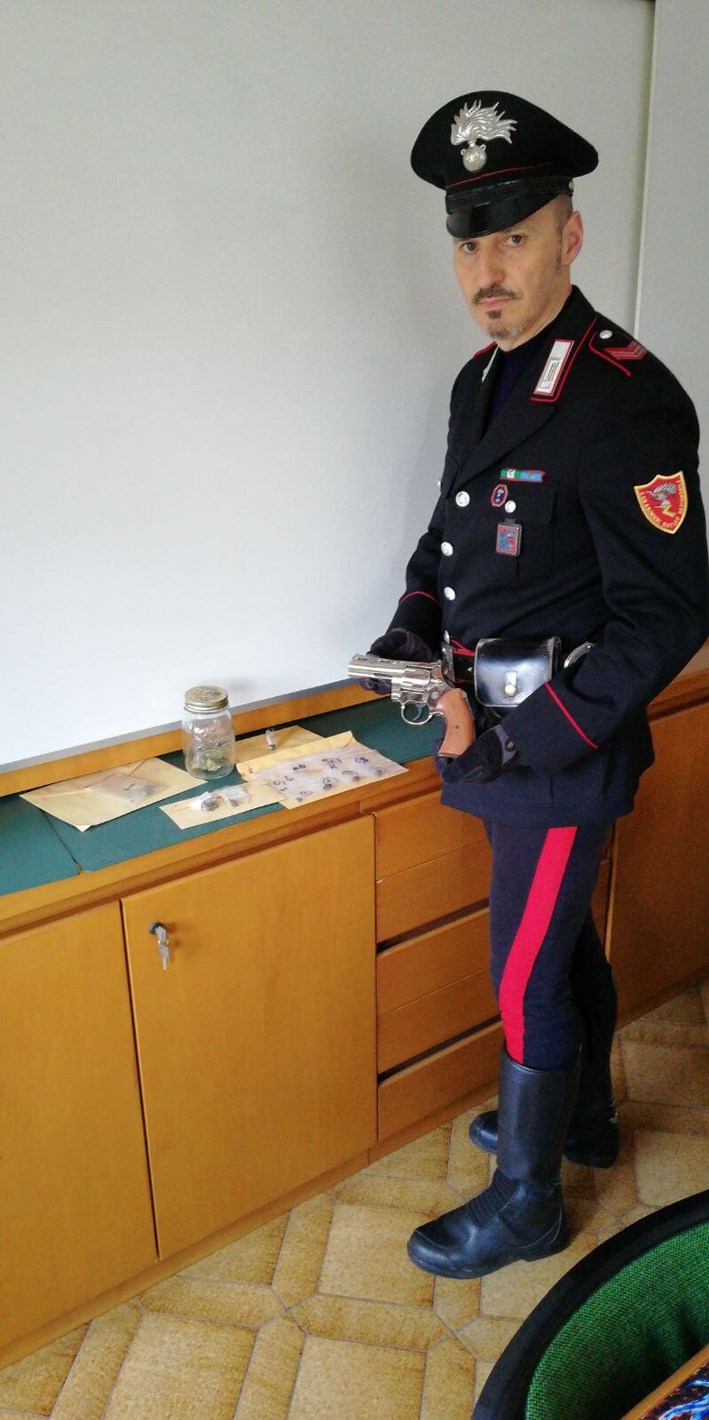 Nel corso di una serie di perquisizioni effettuate nella giornata di ieri è stata rinvenuto una replica di revolver priva del tappo rosso (utilizzato per la rapina) e modiche quantità di marijuana ed hashish che hanno portato a segnalare alla Prefettura sia i denunciati che la parte offesa dalla rapina quali assuntori di stupefacenti.