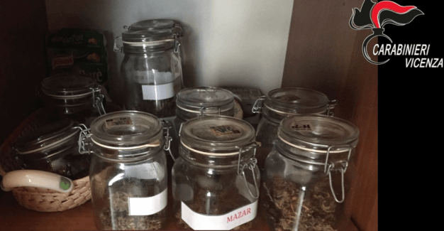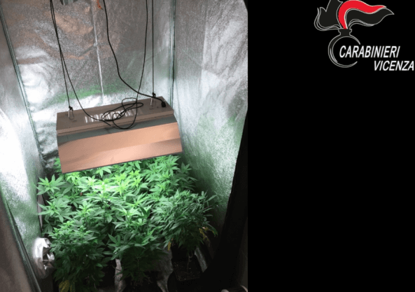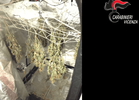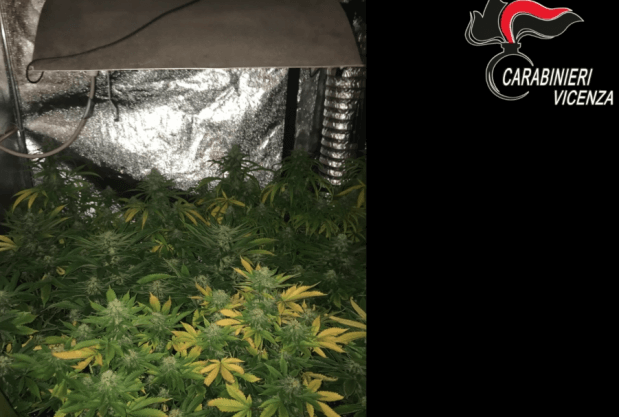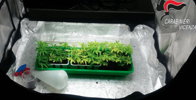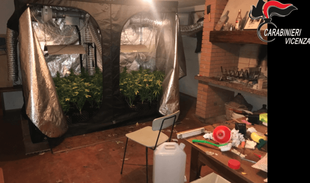 Il Nucleo Operativo e Radiomobile dei Carabinieri di Bassano del Grappa ha condotto due distinte operazioni lampo nel Vicentino in contrasto alla coltivazione illegale di marijuana. Verso le 12 di ieri, a seguito di approfondita attività informativa, i Carabinieri hanno condotto una perquisizione di iniziativa aCartigliano, nell’abitazione di S.G., 30enne del posto. I militari dell’Arma hanno scoperto un’abitazione dedicata alla coltivazione della marijuana con veri e propri accorgimenti da esperto: serre attrezzate di tutto punto per seguire la crescita della pianta, diverse varietà coltivate e strumentazione professionale; non ultimo l’utilizzo di fertilizzante ricavato dalle feci di pipistrello che, a detta dell’arrestato, sarebbero il miglior concime per la pianta. Sono stati sequestrati dai Carabinieri 1,5 kg di stupefacente già essiccato, oltre 40 piante in varie fasi di crescita, 10 g di hashish, 990 euro in contanti e tutta l’attrezzatura. S.G. è stato posto ai domiciliari in attesa dell’udienza di convalida su disposizione del Pm di turno della Procura della Repubblica di Vicenza De Munari. Durante la catalogazione di quanto sequestrato è stato esaminato il cellulare dell’arrestato, da cui sono emerse immagini di altre serre per la coltivazione dello stupefacente. Grazie all’analisi delle foto, scattate mentre era attivo il sistema GPS, i Carabinieri sono risaliti all’indirizzo di un’altra abitazione di Lugo di Vicenza. Veniva quindi effettuata verso le 17 una seconda perquisizione dove è stato arrestato B.F., 54enne del luogo. Anche in questo caso è stata rinvenuta un’attrezzatura professionale simile al precedente e sono stati sequestrati dai Carabinieri 3 kg di stupefacente già essiccato, oltre 30 piante in varie fasi di crescita e tutta l’attrezzatura. Anche B.F. è stato posto ai domiciliari in attesa dell’udienza di convalida.