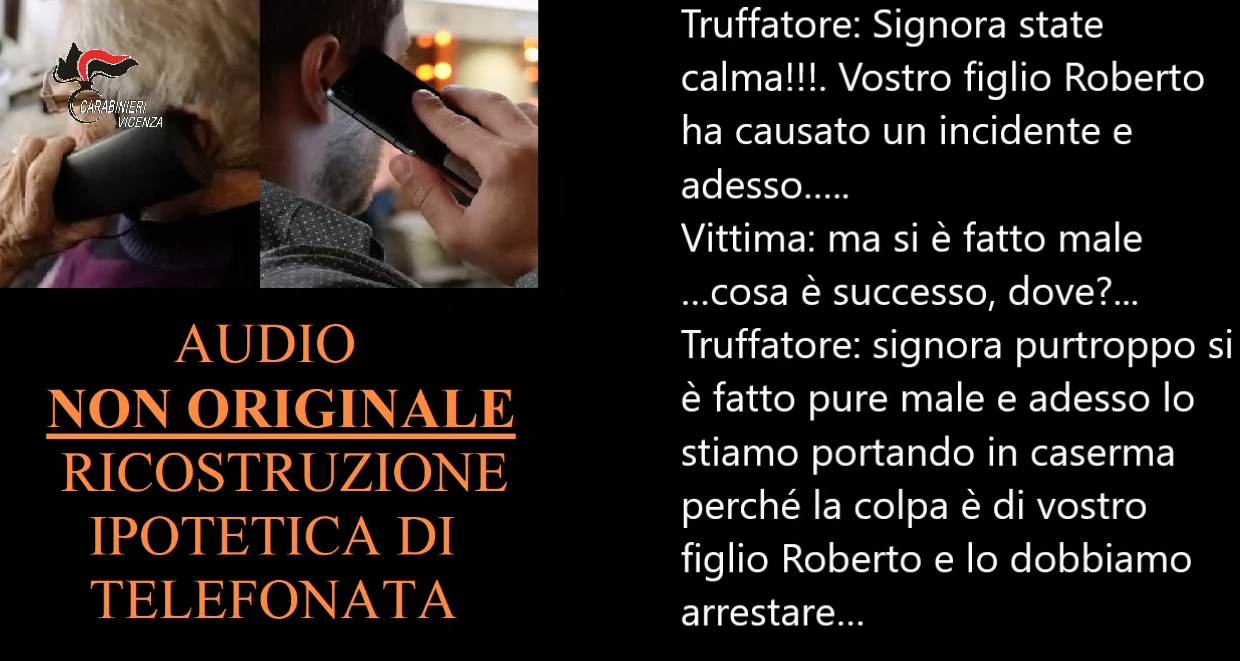 La persona anziana riceve una telefonata su linea fissa ad opera di un sedicente Carabiniere che informa di un presunto gravissimo incidente stradale ad un parente, solitamente figlio o figlia. Il truffatore, convince l’anziano che da tale evento scaturirà l’arresto del parente a meno che non venga reperita immediatamente una consistente somma di denaro in contanti o, se non sufficienti, in monili in oro. Questa somma di denaro serve, a detta del truffatore, per pagare un avvocato che possa sbrigare velocemente le pratiche ed evitare così il carcere al parente coinvolto. Il truffatore conclude la telefonata anticipando che di lì a breve passerà l’avvocato per il ritiro del compenso. Si presenta infine alla porta dell’anziano, a distanza di pochissimo, il secondo truffatore, sempre ben vestito, che chiede il compenso per la presunta attività legale e si dilegua immediatamente non appena lo ha ottenuto. In tale modus operandi i Carabinieri hanno quindi identificato la presenza di due figure distinte, ossia un “telefonista” che prepara il terreno ed un “esecutore materiale” che si presenta come avvocato e riscuote il maltolto. Partendo da due episodi i militari dell’Arma hanno svolto una certosina attività di indagine durata alcuni mesi, utilizzando tutti gli strumenti investigativi a disposizione.