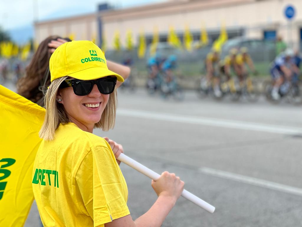 Coldiretti Vicenza ha disseminato di bandiere gialle il percorso bassanese della 106ª edizione del Giro d’Italia. Così l’Associazione maggiormente rappresentativa del mondo agricolo ha salutato la carovana rosa, con la delegata dei Giovani, Ilaria Pizzolato in prima linea con la bandiera gialla di Coldiretti, con l’obiettivo di consegnare agli appassionati di ciclismo l’immagine di un territorio genuino e suggestivo, caratterizzato dalle tradizioni che confermano l’autenticità dei valori di Coldiretti.