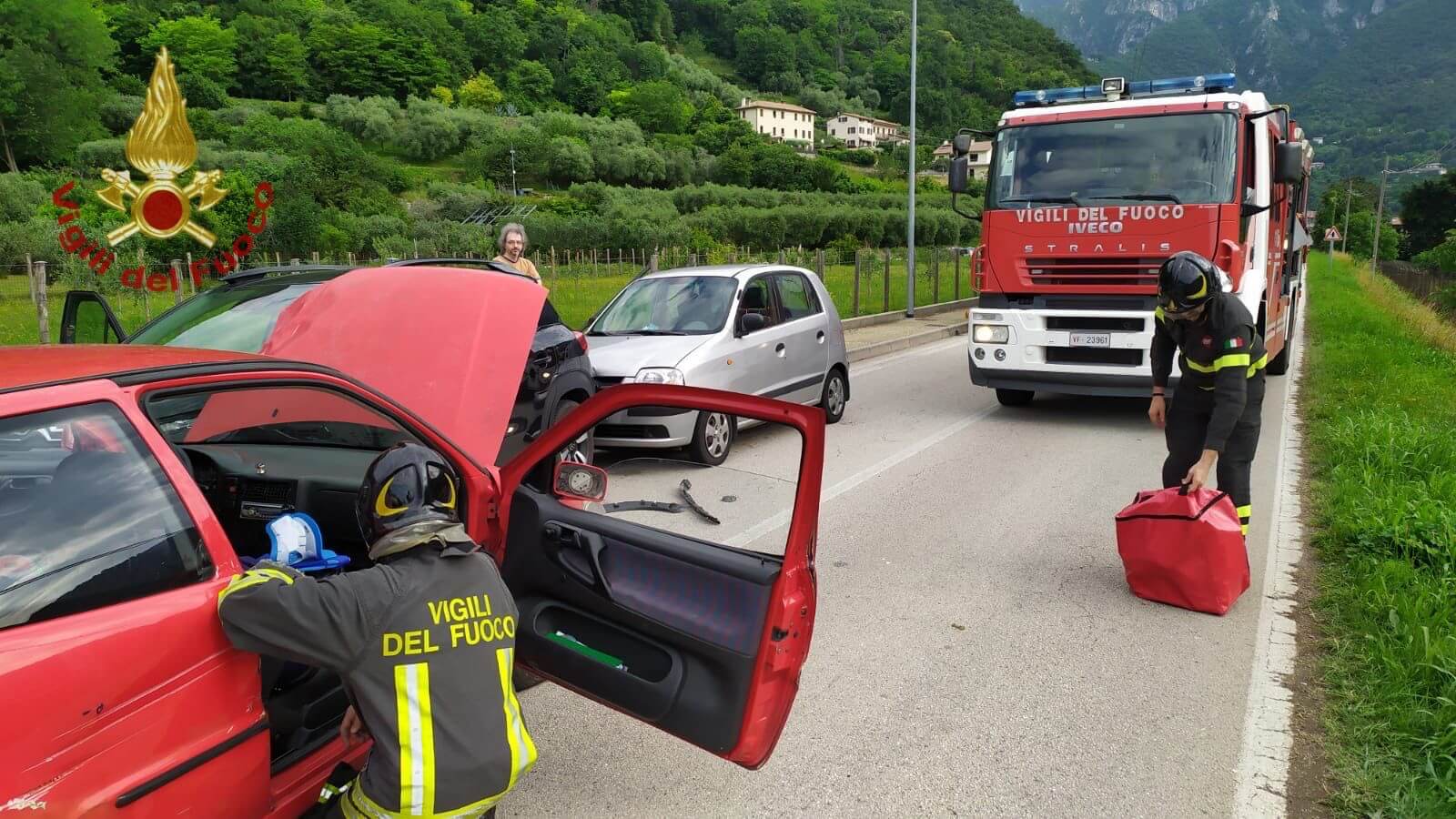 Al lavoro la squadra dei vigili del fuoco del locale distaccamento che ha messo in sicurezza i mezzi e soccorso gli automobilisti coinvolti, tra cui una persona incastrata, estratta dalle lamiere.