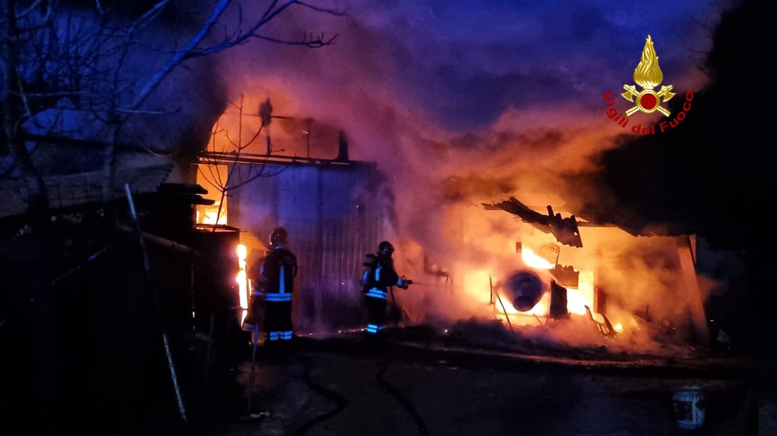 BASSO VICENTINO – A fuoco capannone agricolo nella notte (video)