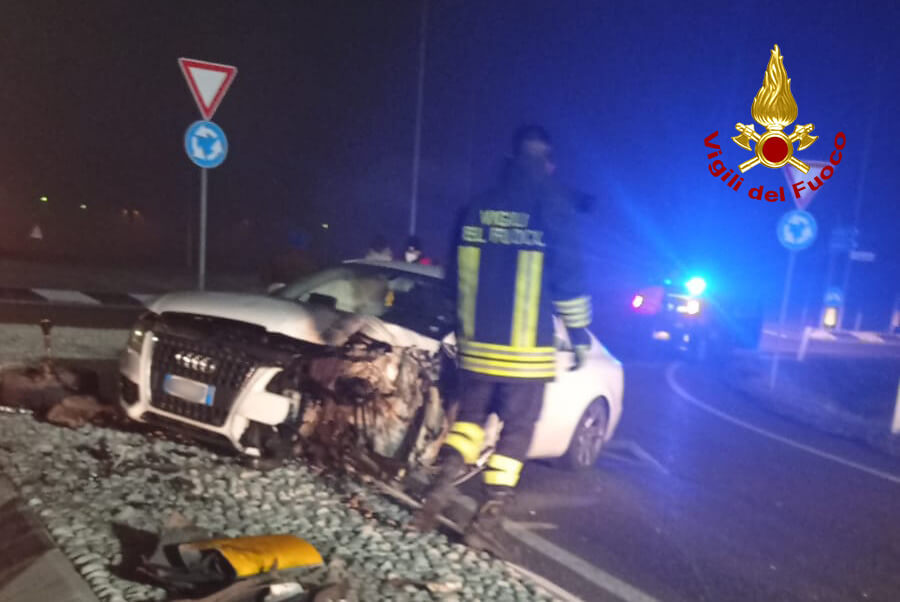 La notte scorsa, un quarto d’ora prima delle 1, i vigili del fuoco sono intervenuti lungo la strada provinciale San Feliciano ad Alonte per un’auto finita contro un palo dell’illuminazione elettrica e il cordolo di un marciapiedi, che delimita la carreggiata: illeso l’autista. I pompieri arrivati da Lonigo, hanno messo in sicurezza la berlina Audi, che ha perso la ruota anteriore sinistra nell’urto e il palo elettrico, mentre il conducente è venuto fuori autonomamente. Sul posto i carabinieri per i rilievi del sinistro. Le operazioni di soccorso dei vigili del fuoco sono terminate dopo circa un’ora.