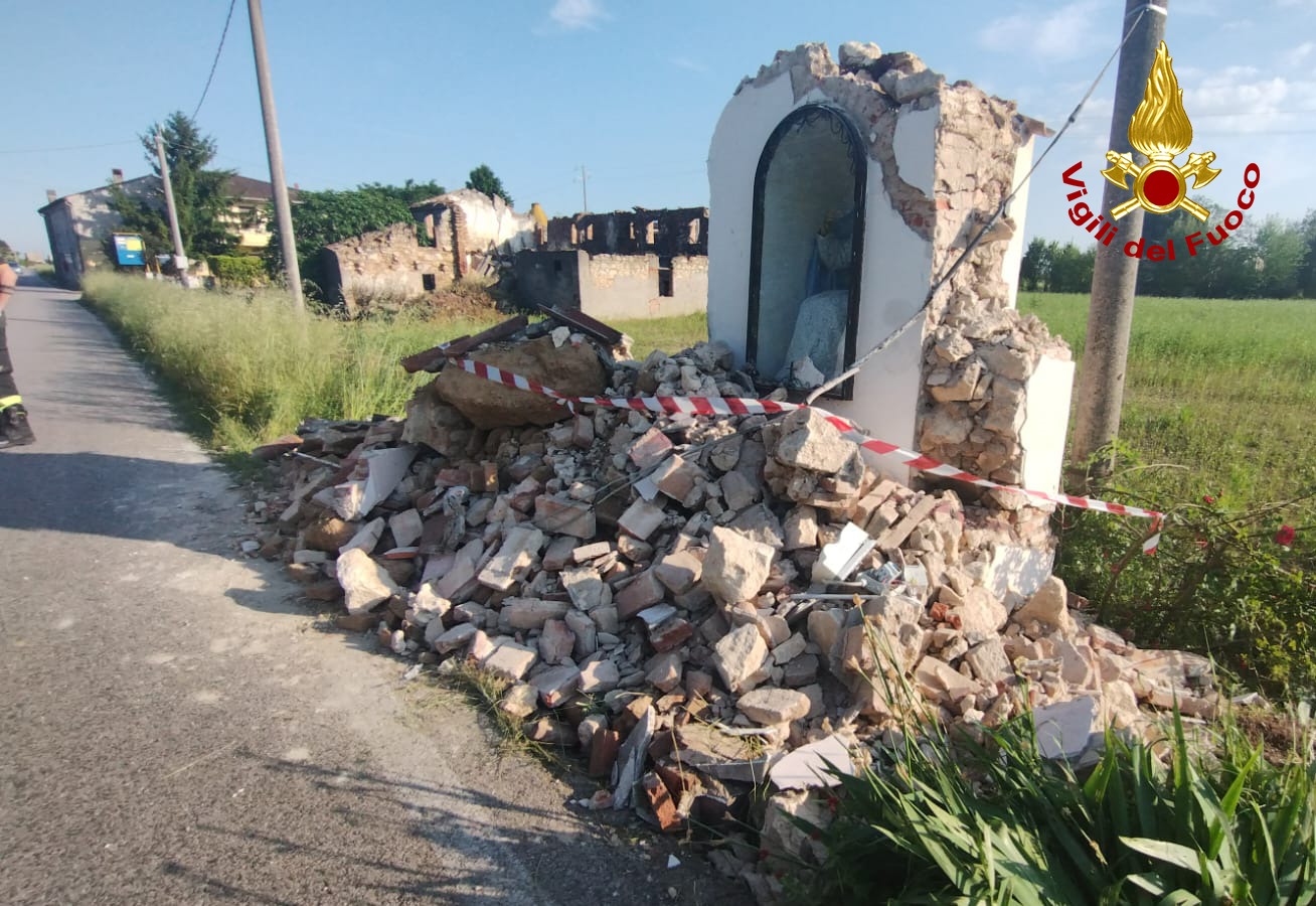 Alle ore 17 di oggi, i Vigili del Fuoco sono intervenuti in Via Pezze Lunghe, lungo la SP3 a Pojana Maggiore, per il grave danneggiamento di un capitello votivo dedicato alla Madonna, urtato dal rimorchio di un camion.