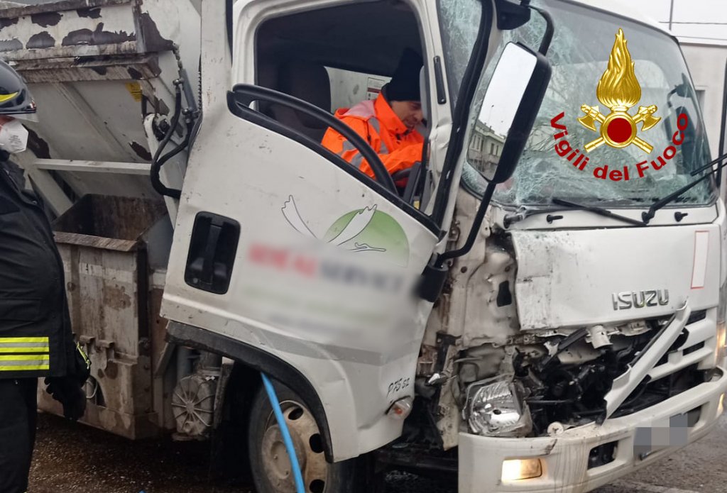 Intervento della Polizia Locale di Lonigo stamane alle ore 10:30 per un grave incidente. Un autocarro Isuzu camion adibito a raccolta della nettezza urbana della Società concessionaria per tale servizio, per motivi in corso di accertamento, durante la manovra di parcheggio in Via dell’Artigianato, Lonigo, è andato a sbattere violentemente con un altro autocarro Iveco, adibito alla raccolta rifiuti urbani parcheggiato nel piazzale. A seguito dell’urto il conducente del mezzo, V. F. italiano di 45 anni, residente a Schio ha riportato diverse lesioni, che in un primo tempo apparivano ben più gravi, venendo trasportato da autolettiga presso l’ospedale di San Bonifacio (VR) con codice di media gravità. Per estrarre il conducente, rimasto incastrato nel mezzo, è intervenuta una squadra dei Vigili del fuoco di Lonigo. Sono tutto in corso, in ragione della particolarità del sinistro, le indagini tecniche sulla funzionalità tecniche del mezzo, la velocità del veicolo al momento del sinistro e la regolarità della massa trasportata.