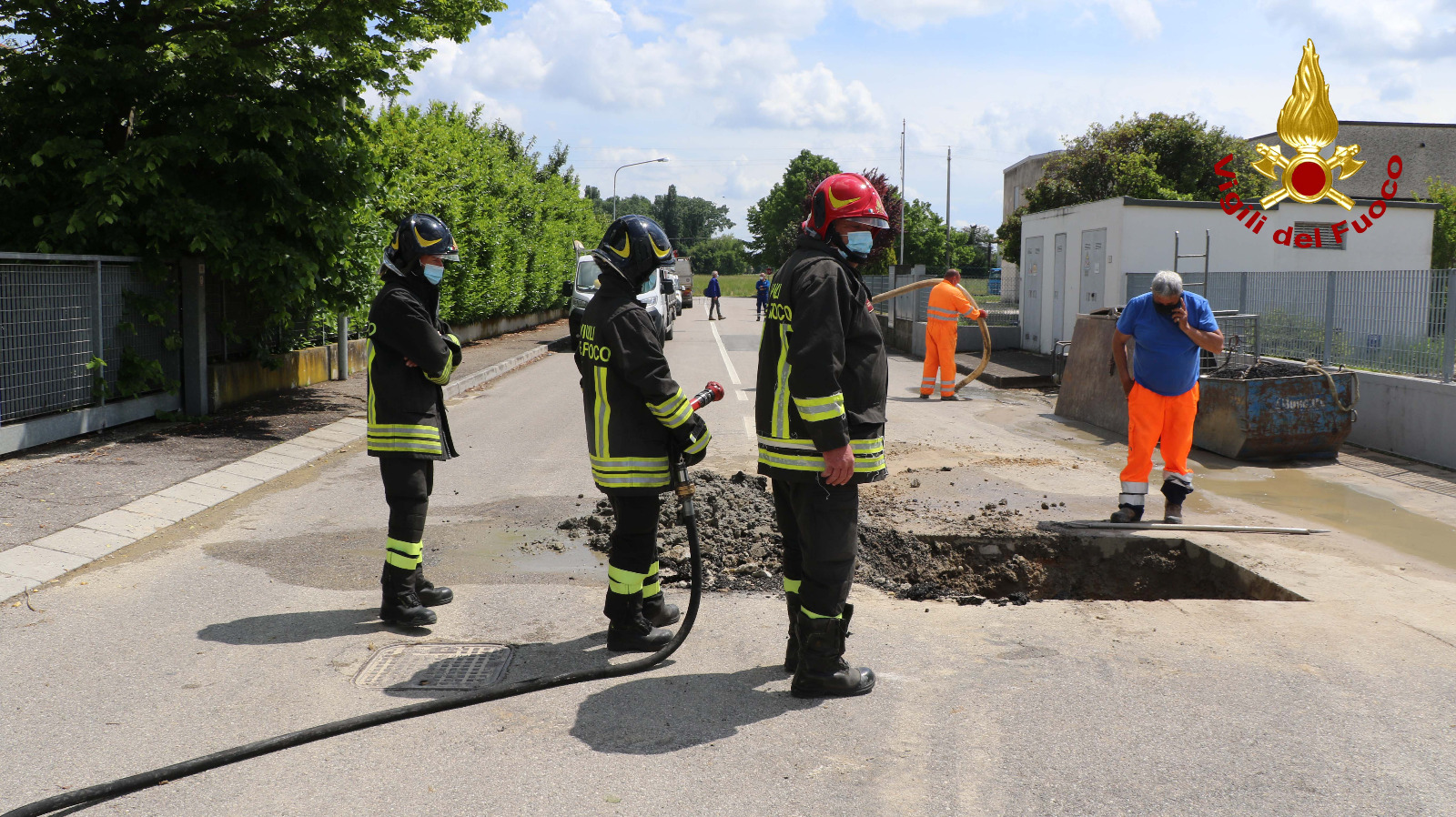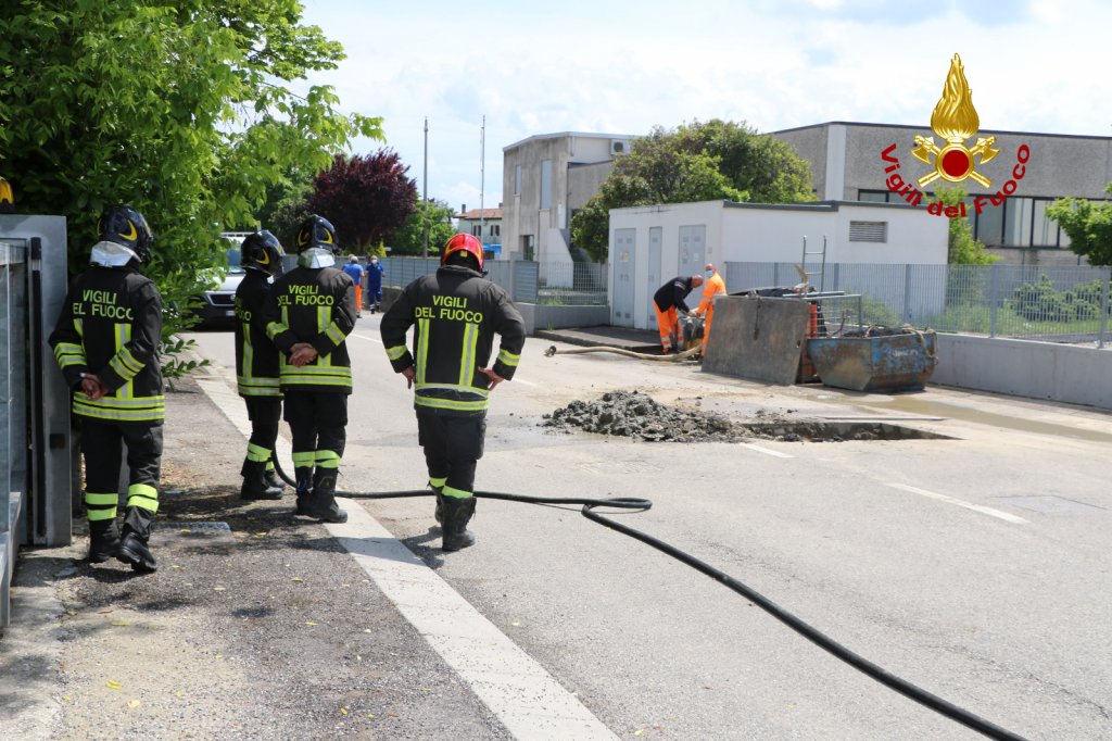 BASSO VICENTINO – Si rompe tubatura del metano: pompieri al lavoro (VIDEO)