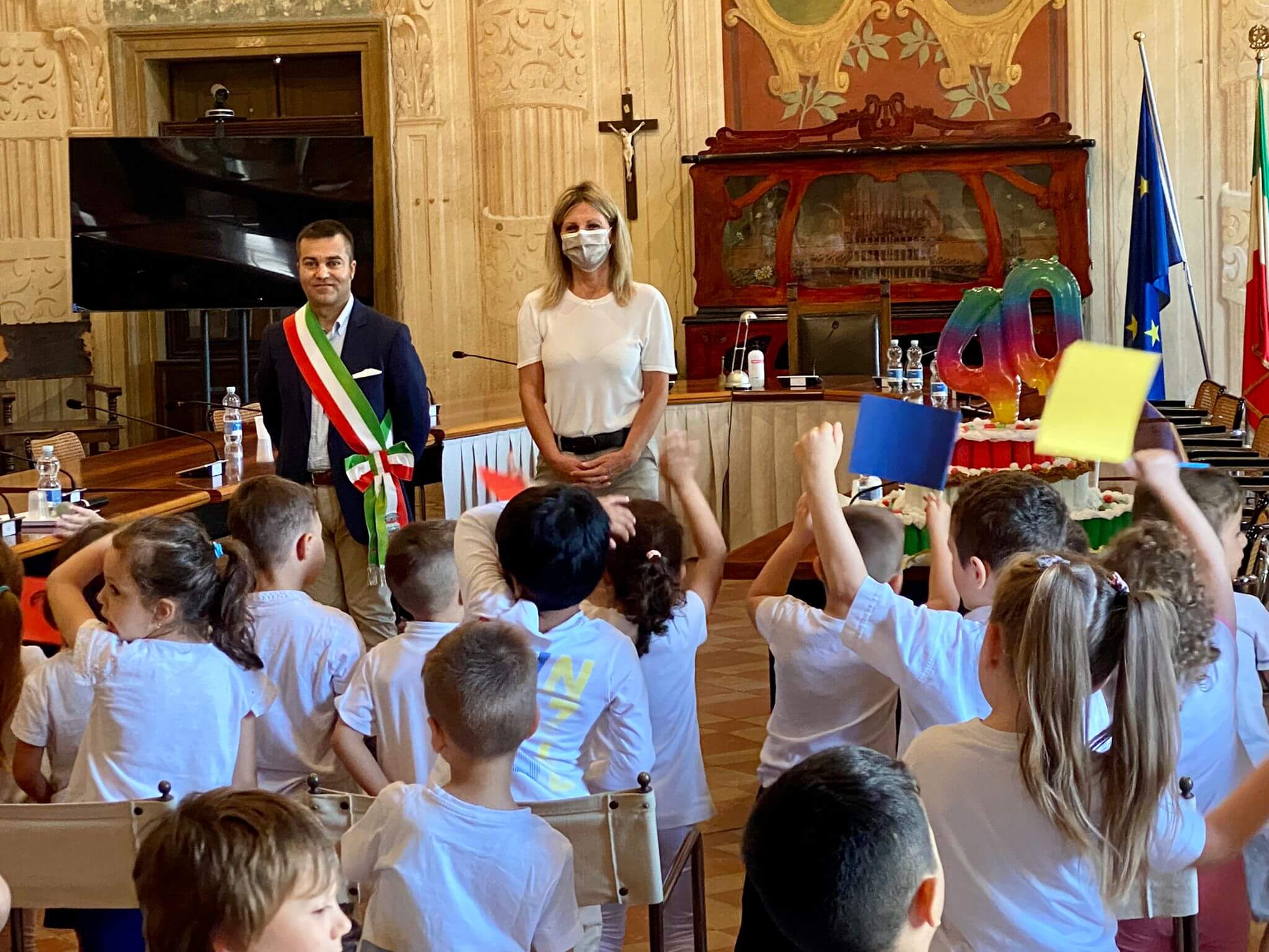 Una scuola che prende il nome da una data importante, il “2 giugno” e che si trova in una via intitolata alla Repubblica italiana. I bambini entrando in Comune hanno cantato l’inno d’Italia, un momento di festa che è diventato istituzionale. Bravissimi!!!