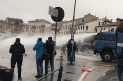 Sono stati usati gli idranti dalla polizia per disperdere i dimostranti, che hanno tirano oggetti vari contro i poliziotti Due cariche delle forze dell’ordine e l’uso degli idranti hanno disperso i manifestanti che si sono allontanati di corsa da via Belludi, la principale strada di accesso alla Basilica di Sant’Antonio, per defluire lungo via Roma, arteria pedonale in centro città.