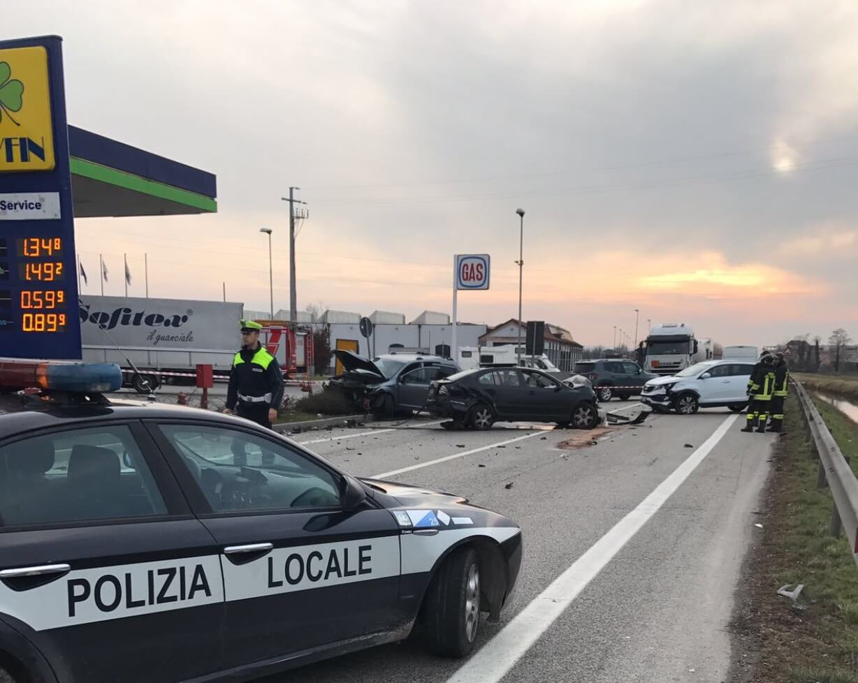 Bolzano Vicentino, strada statale 53, ore 16:10 di mercoledì 08 febbraio. M.C., uomo 42enne di Soragna (PR), alla guida dell’autovettura Kia, stava percorrendo la strada statale 53 con direzione Vicenza. Giunto all’altezza del distributore Belfyn, per cause in corso di accertamento, tamponava l’autovettura Skoda che lo precedeva, condotta da P.V., uomo 46enne di Bassano del Grappa. L’autovettura Skoda, per effetto del tamponamento, invadeva l’opposta corsia di marcia dalla quale stava sopraggiungendo, con direzione Treviso, l’autovettura Chrysler condotta da G.T., uomo 58enne di Rosà, che non riusciva ad evitare l’urto frontale.