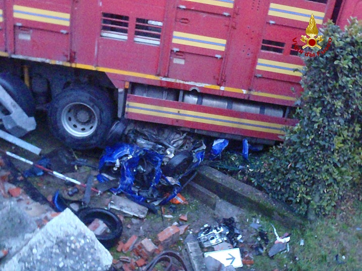 Si tratta di un giovane di Bolzano di Vicentino. La sua auto finita schiacciata sotto un camion nel Tesinella lungo la SS 53 a Bolzano Vicentino. Secondo una prima ricostruzione il camion che trasportava animali, si è scontrato con una BMW finita fuori strada con due persone a bord (ferite e trasportate all’ospedale di Vicenza). Successivamente è entrato in collisione con una Opel Corsa trascinandola giù da un ponte e schiacciandola.