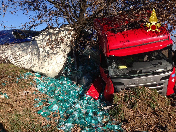 Aggiornamento dinamica incidente – Un’ autovettura, condotta da uomo M.O. di anni 67 residente a Bologna, che uscita dal casello autostradale di Vicenza nord con direzione Treviso, per cause in corso di accertamento, ha sbandato, occupando la corsia opposta di marcia e collidendo frontalmente con autoarticolato condotto da uomo M. R. di anni 32 residente a Villafranca di Verona. La collisione ha causato lo scoppio di un pneumatico dell’autoarticolato ed il rimorchio, che trasportava pacchi di acqua minerale si è ribaltato, adagiandosi sul fianco destro e occupando quasi tutta la carreggiata. Fortunatamente i conducenti sono usciti illesi dai veicoli.