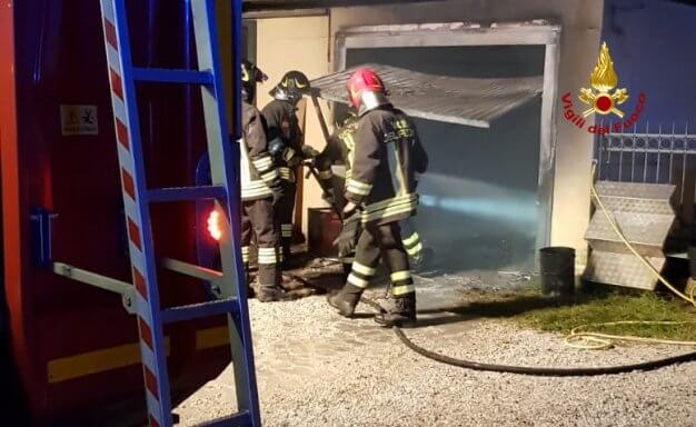 La notte scorsa, poco dopo le 1.30, i vigili del fuoco sono intervenuti in via Chizzalunga a Breganze per l’incendio divampato all’interno di un garage. I pompieri accorsi da Bassano e Vicenza con due automezzi e sette operatori hanno spento l’incendio evitando l’estensione delle fiamme ad un attiguo laboratorio di serramenti. Le fiamme hanno bruciato il contenuto del garage consistente in attrezzatura da giardinaggio e materiale non più usato depositato all’interno. Le cause probabilmente elettriche sono al vaglio dei vigili del fuoco. Sul posto anche i carabinieri. Le operazioni di completo spegnimento e messa in sicurezza del luogo sono terminate dopo circa due ore e mezza.