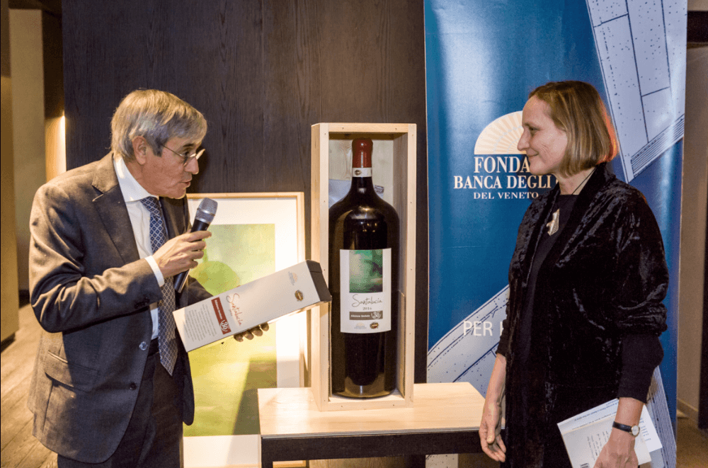È stato presentato al ristorante Le Calandre di Rubano (Padova) il vino Santalucia 2016, un Cabernet Sauvignon realizzato dalla Cantina Maculan per la Fondazione Banca degli Occhi del Veneto Onlus. L’idea, nata da Fausto Maculan, unisce l’eccellenza vitivinicola con la frontiera della ricerca del centro regionale di riferimento per i trapianti di cornea di Veneto e Friuli Venezia Giulia, il più importante per numero di donazioni a livello europeo. Il vino è stato selezionato da una commissione di giornalisti, critici enogastronomici e sommelier che hanno assaggiato tutte le barrique dell’annata 2016 della Cantina Maculan per individuare la migliore: la scelta è caduta su un Cabernet Sauvignon proveniente dai vigneti situati sulle colline più alte del comune di Breganze. Tutta la barrique (ovvero 225 litri, per un totale di 300 bottiglie da 750 ml) è stata imbottigliata con un’etichetta che rappresenta un’opera firmata dall’artista bellunese Graziella Da Gioz, scelta dal critico Marco Goldin per essere donata alla Fondazione. Il dipinto, intitolato Verdi riflessi, trae spunto da un ciclo di opere dedicate ai Palù trevigiani, terre che hanno ispirato la pittura dell’artista in diverse mostre e libri, uno dei quali pubblicato con il poeta Andrea Zanzotto. Lo scopo del progetto è quello di sostenere attraverso 300 bottiglie uniche e numerate i progetti di ricerca sulle malattie oculari di Fondazione Banca degli Occhi del Veneto Onlus, a cui sarà devoluto il ricavato. “Ho scelto di dedicare una parte del mio lavoro a questa iniziativa – sottolinea Fausto Maculan – che si rivolge a chi ha bisogno dei risultati delle nuove ricerche, ma anche ai sostenitori che scelgono di offrire il proprio contributo e alle istituzioni presenti che vi partecipano. Quest’anno la ricorrenza è ancora più speciale: il Santalucia 2016 sarà il vino ufficiale del Trentennale della Fondazione”. Fondazione Banca degli Occhi del Veneto Onlus è infatti il centro di riferimento nazionale per i trapianti di cornea. Quasi la metà dei trapianti che ogni anno vengono effettuati in tutta Italia (il 48%, pari a 3000), sono possibili grazie ai tessuti oculari che arrivano dal padiglione veneto dell’Ospedale dell’Angelo di Mestre, intitolato alla memoria del professor Giovanni Rama, che ha fondato la banca degli occhi 30 anni fa. “Quest’anno – afferma Giuseppe Di Falco, presidente della Fondazione – abbiamo celebrato il traguardo della centomillesima cornea donata a partire dal 30 settembre 1987. Solo nel 2016, in Veneto, sono state donate 5000 cornee, su un totale nazionale di 16.000: un primato europeo. Oltre a questo, la metà dei 6000 trapianti nazionali sono stati permessi grazie ai tessuti raccolti a Mestre. Una crescita che ci fa sperare nel futuro per il quale stiamo lavorando anche attraverso la ricerca, per trovare sempre più risposte non solo nel campo della cornea ma anche delle malattie della retina. Grazie al progetto Santalucia, avviato nel 2009, a questo scopo sono già stati devoluti oltre 260 mila euro”. La bottiglia di Santalucia 2016 è stata offerta a quanti hanno contribuito al sostegno della ricerca con una donazione di 100 euro. Alla presentazione è stata battuta all’asta una bottiglia in formato Melchior, contenente 18 litri di Santalucia, aggiudicata dal conte Stefano Marzotto di Vicenza per 1800 Euro.