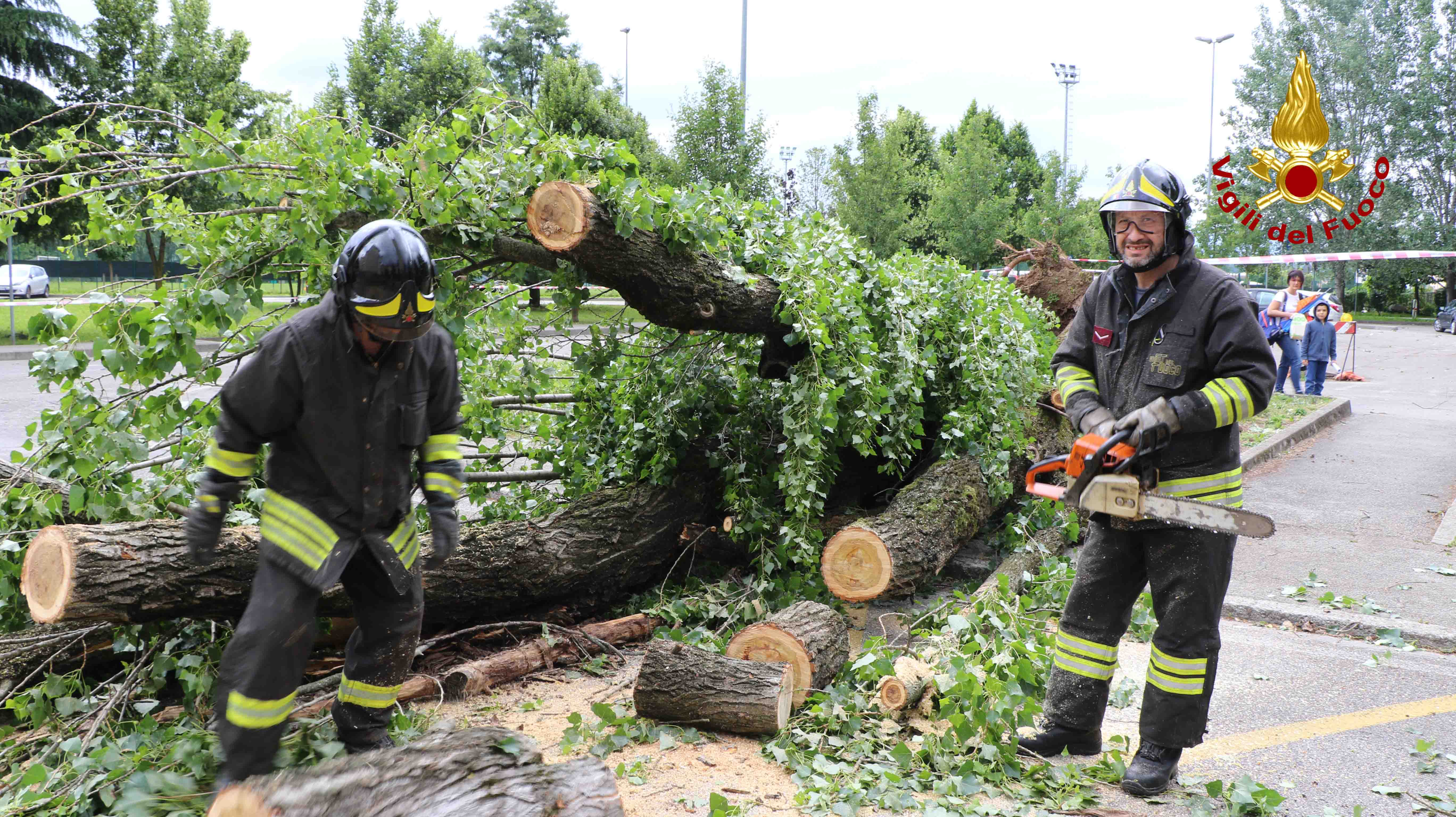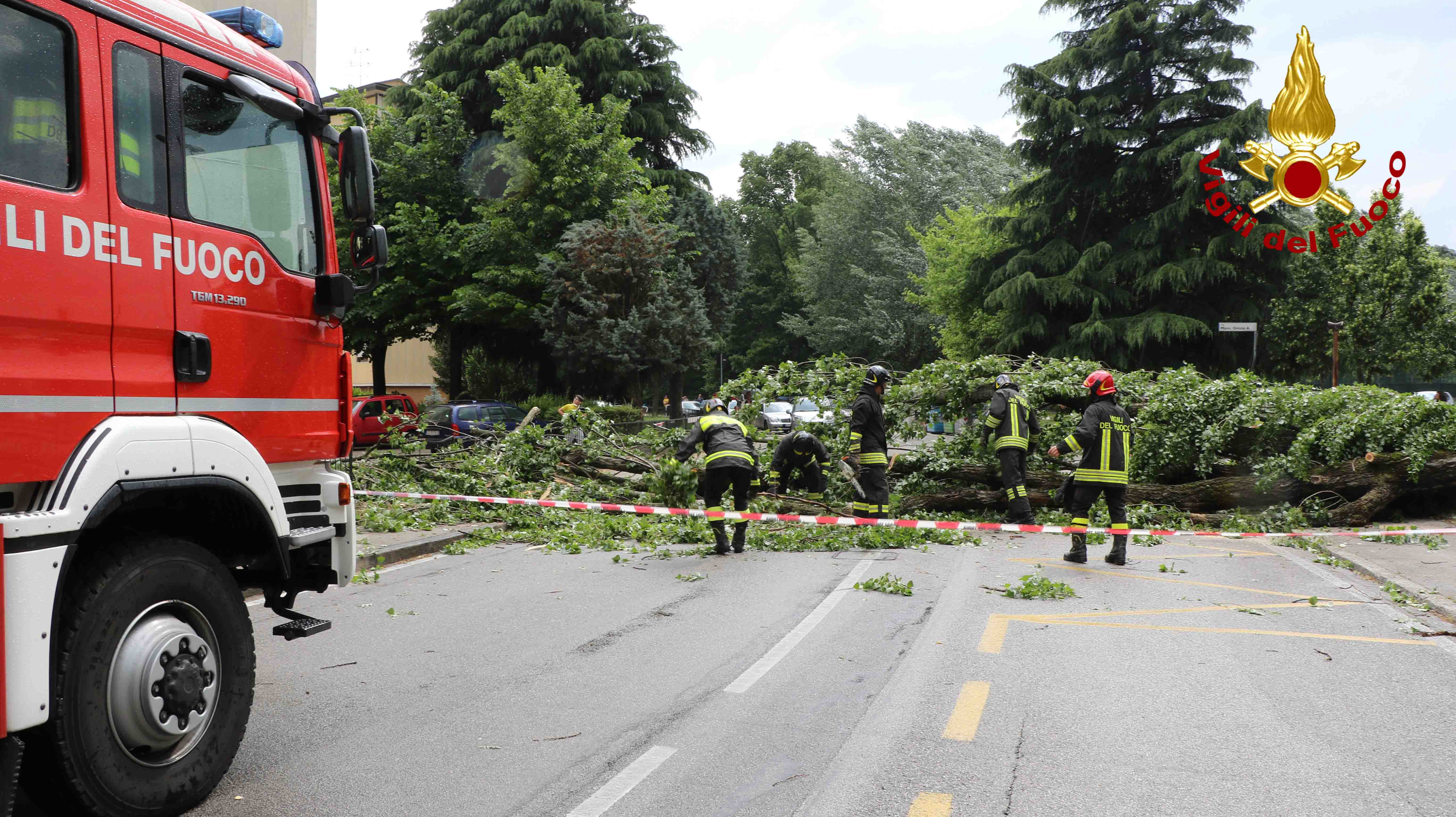 I vigili del fuoco sono impegnati dalle ore 15 per una serie di interventi per la caduta di alberi, cornicioni e cartellonistica pericolante per le forti raffiche di vento e pioggia. Interventi in corso a Vicenza, Creazzo, Dueville, Sandrigo, e Montecchio. Già eseguiti venticinque interventi tra cui la rimozione di un albero di grande fusto caduto in Via Corelli a Vicenza. La pianta completamente sradicata è finita sulla recinzione di un condominio bloccando la circolazione. Caduta di alberi anche via Zileri tra Vicenza e Creazzo dove diverse automobili sono state colpite da alcuni rami. Una signora anziana che viaggiava con la figlia, è stata soccorsa dal suem 118 per un malore dopo la caduta di un grosso ramo sul tetto dell’auto. In corso le operazioni di rimozioni di diversi alberi che bloccano la circolazione in via Rappo a Creazzo. Al momento sono in fase di ultimazione gli ultimi interventi. Centinaia le chiamate arrivate alla sala operativa del 115.