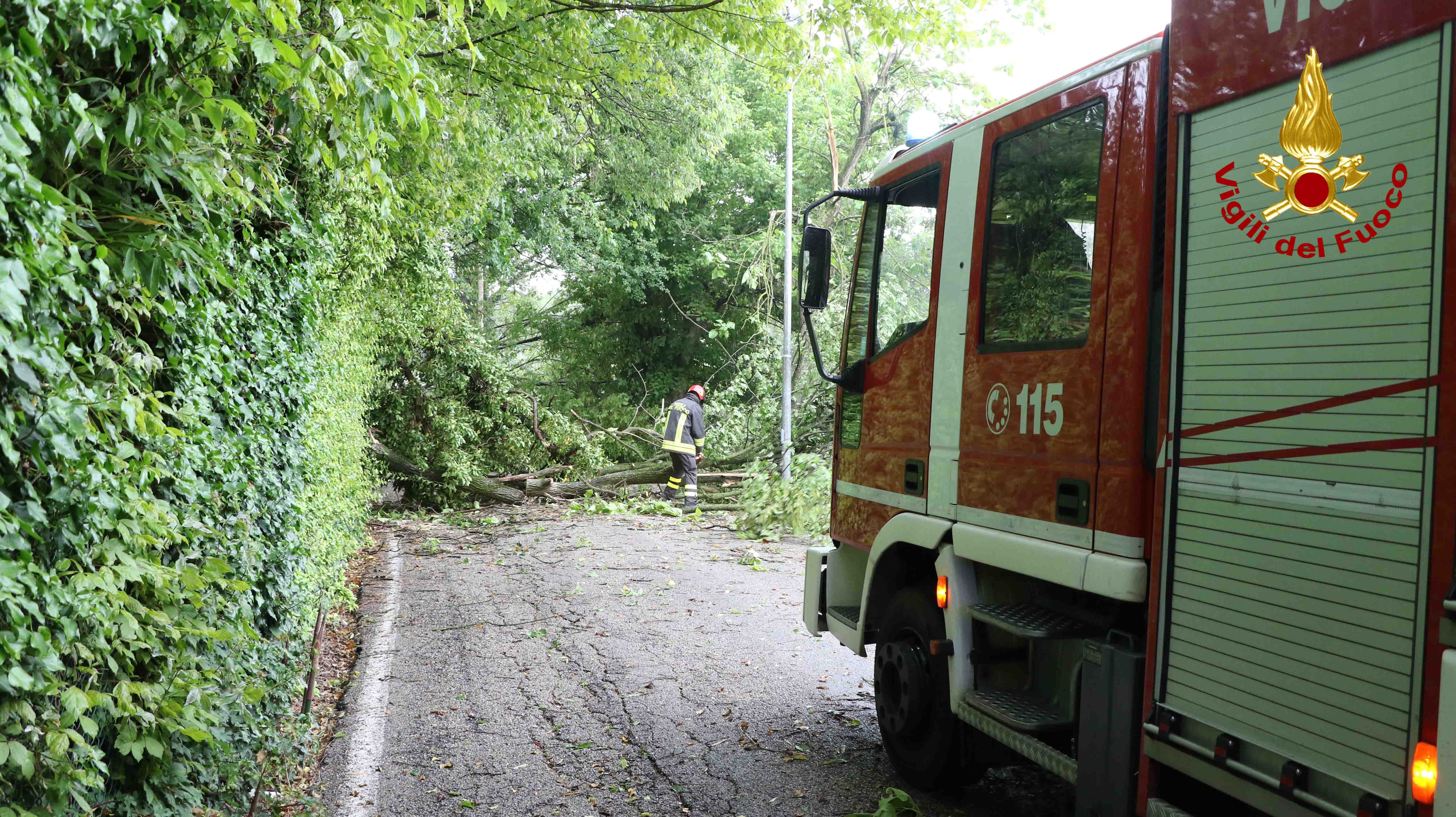 Centralino dei vigili del fuoco preso d’assalto intorno alle 15 per maltempo. Forti temporali hanno investito da Ovest a Est la provincia provocando danni in diversi Comuni. Almeno 60 le richieste di intervento nella centrale di via Farini. Le foto si riferiscono a due alberi caduti a Vicenza nel parchetto di via Boito (zona San Lazzaro), in via Corelli e in zona Villa Zileri (Biron). La maggior parte delle segnalazioni arrivano da Creazzo, Monteviale e Vicenza.