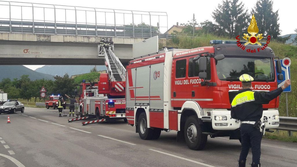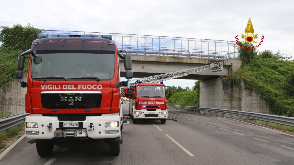 Poco dopo le 14:00 di venerdì, i vigili del fuoco son intervenuti in via dell’Autostrada a Thiene lungo il raccordo che collega il casello autostradale all’ospedale per la caduta di calcinacci da un cavalcavia: nessuna persona è rimasta ferita o coinvolta. La segnalazione è stata data da una signora, la quale transitando in auto lungo la strada si è accorta della caduta di alcune malte. I vigili del fuoco accorsi da Schio e Vicenza con l’autoscala, hanno provveduto a far chiudere il transito della strada per effettuare un primo sopralluogo visivo. Successivamente si è provveduto alla rimozione delle malte pericolanti dai pannelli posti a protezione della struttura portante del cavalcavia. Sul posto personale di Viabilità e un tecnico del comune di Thiene e la polizia locale. Le operazioni di soccorso dei vigili del fuoco sono terminate alle 17:30.