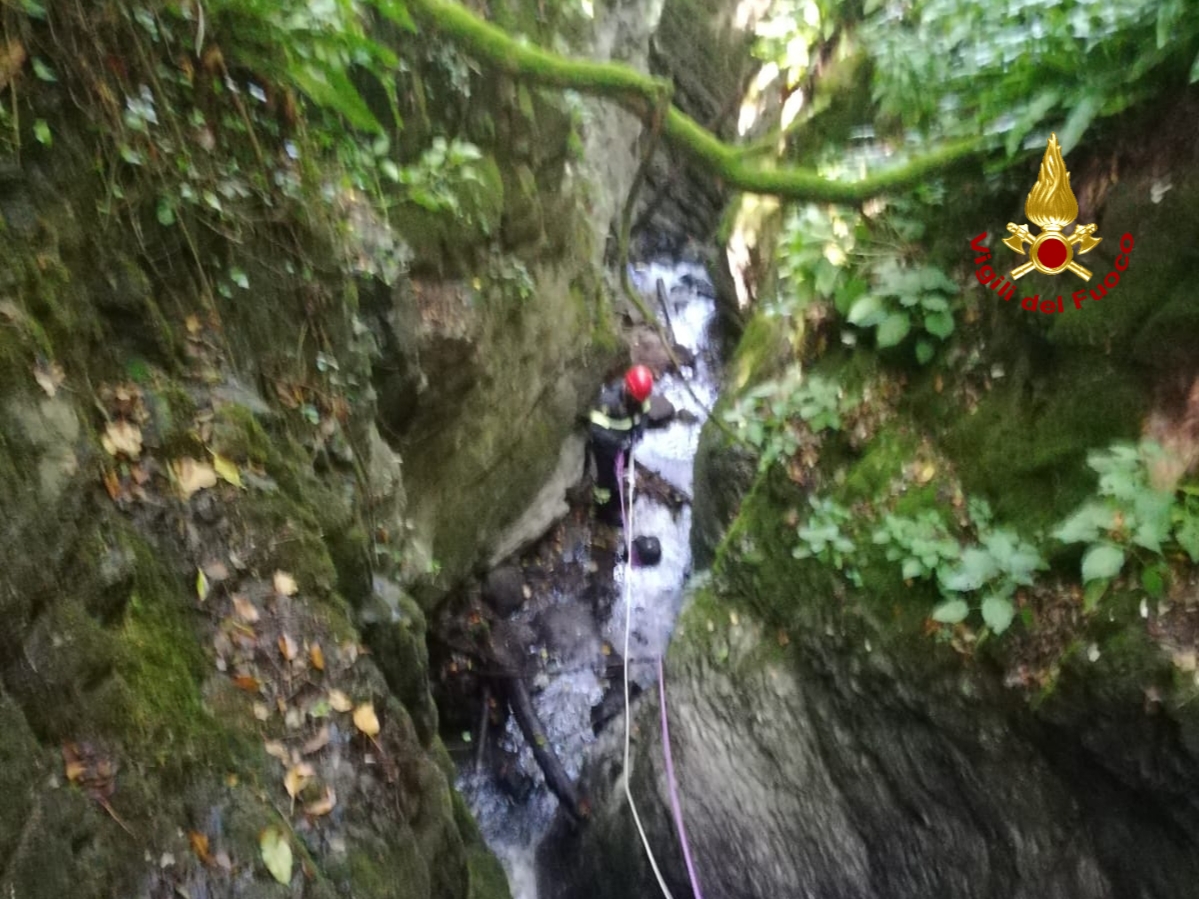 Cagnolina in un dirupo salvata dai pompieri dopo una settimana
