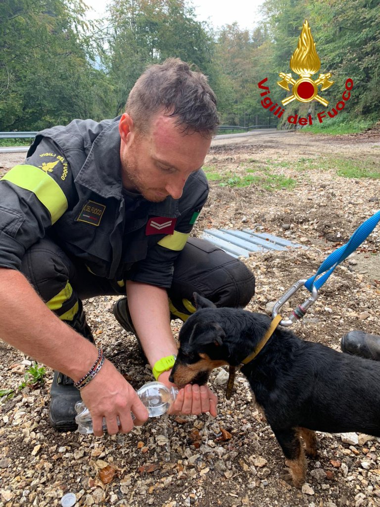 Cagnolino cade in una voragine: missione di salvataggio dei pompieri