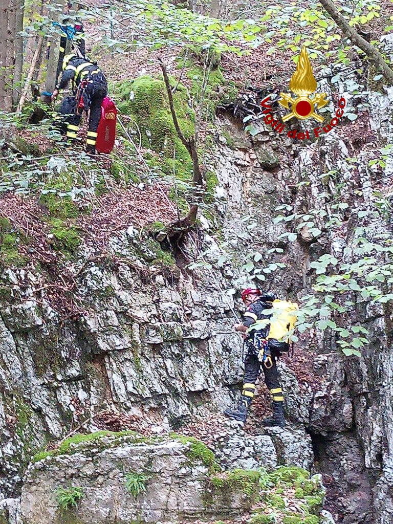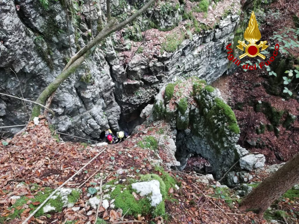 È stato recuperato nel pomeriggio dai vigili del fuoco il cagnolino caduto nella “spelonga Carlo Guarini” a Ponte San Lorenzo a Solagna. Questa mattina la segnalazione alla sala operativa del 115, dei guaiti provenienti dalla voragine. I pompieri arrivati da Bassano dopo una prima verifica hanno fatto intervenire il nucleo SAF (speleo alpino Fluviale) di Vicenza. Due operatori assistiti dal personale della squadra di Bassano, si sono calati raggiungendo 15 metri più in basso il cane, che era bloccato su una sporgenza pianeggiante della parete rocciosa. Il meticcio è stato messo dentro una sacca per la risalita con gli operatori, che l’hanno coccolato fino all’arrivo dell’addetto del servizio veterinario, il quale l’ha preso in custodia.