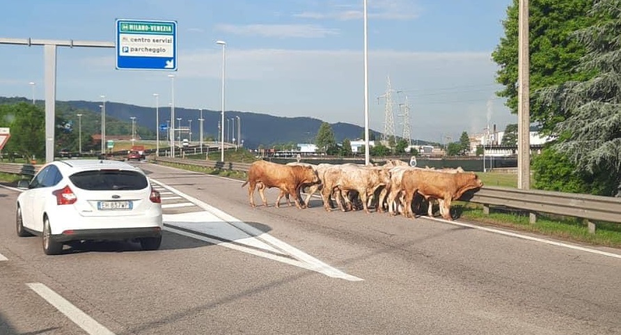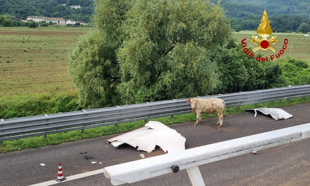 Alle 7:00 di giovedì di giovedì, 23 maggio i vigili del fuoco sono intervenuti in autostrada A4, tra gli svincoli di Montecchio Maggiore e Vicenza Ovest per un autoarticolato carico di bovini finito rovesciato su un fianco: due persone ferite, 30 animali in giro per l’autostrada, altri morti.