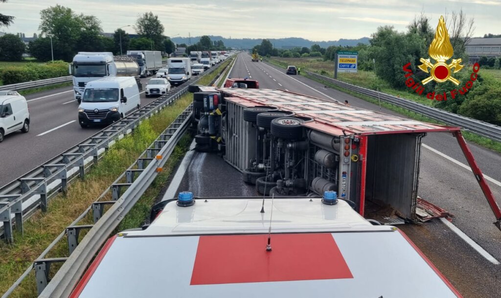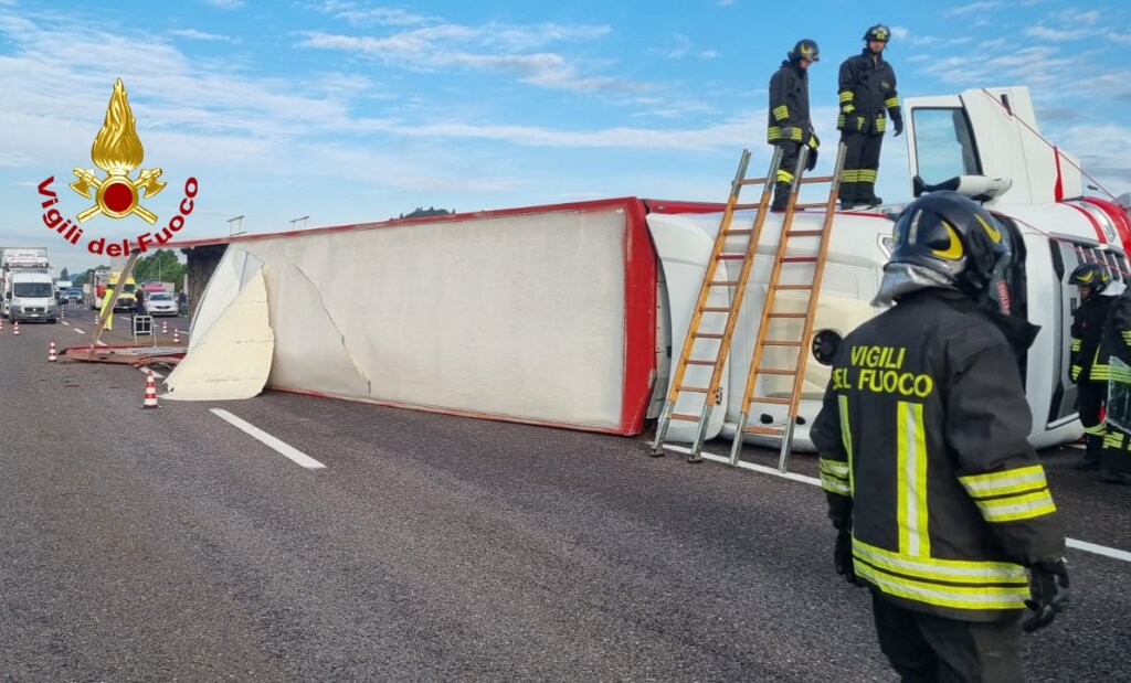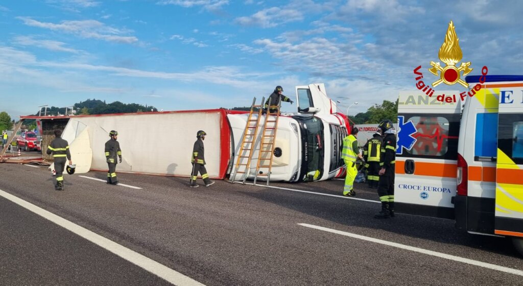 A4 VICENZA, CAMION CARICO DI BOVINI SI ROVESCIA IN AUTOSTRADA: DUE PERSONE FERITE, ANIMALI IN GIRO PER L’AUTOSTRADA