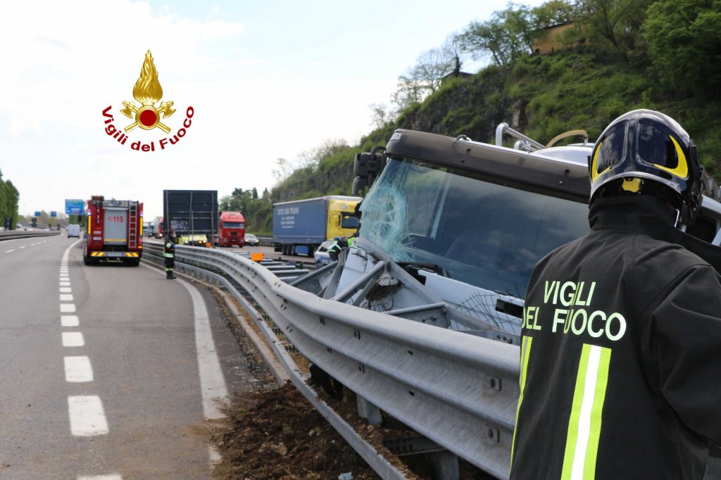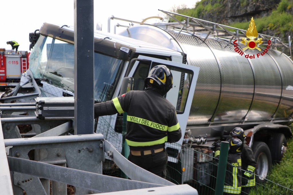 Camion-cisterna di latte contro guardrail in A4: autista ferito (FOTO&VIDEO)