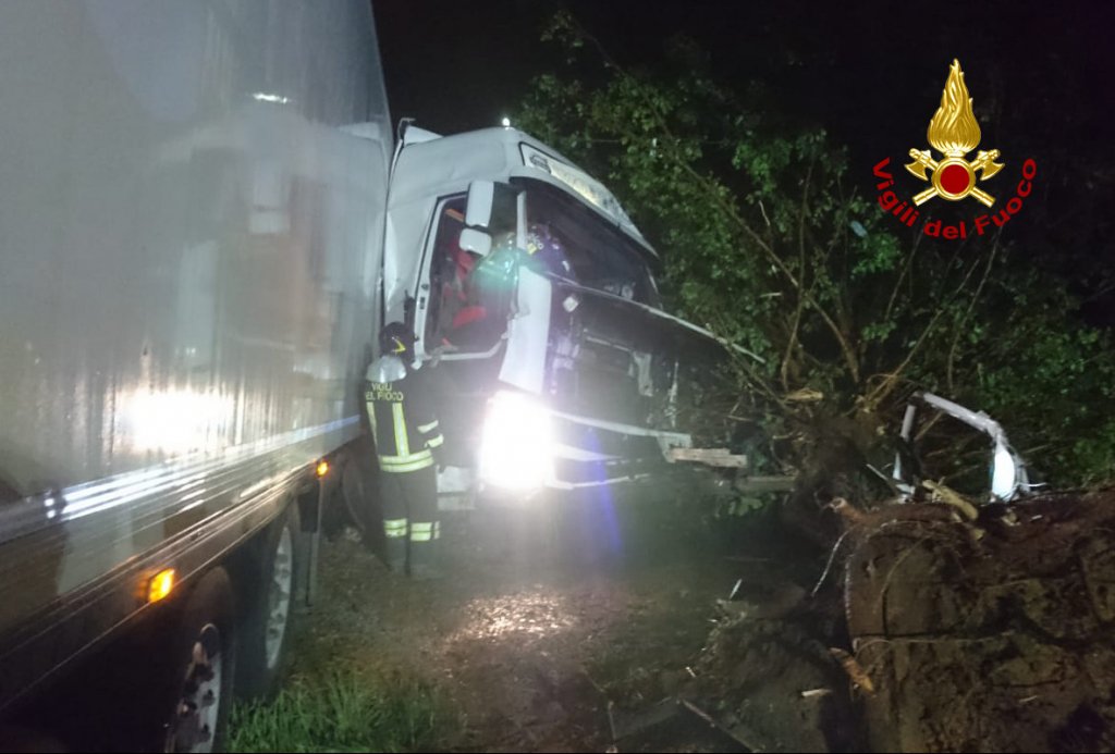 Camion contro albero nel Vicentino: conducente ferito e ore di lavoro per il recupero del mezzo (FOTO)