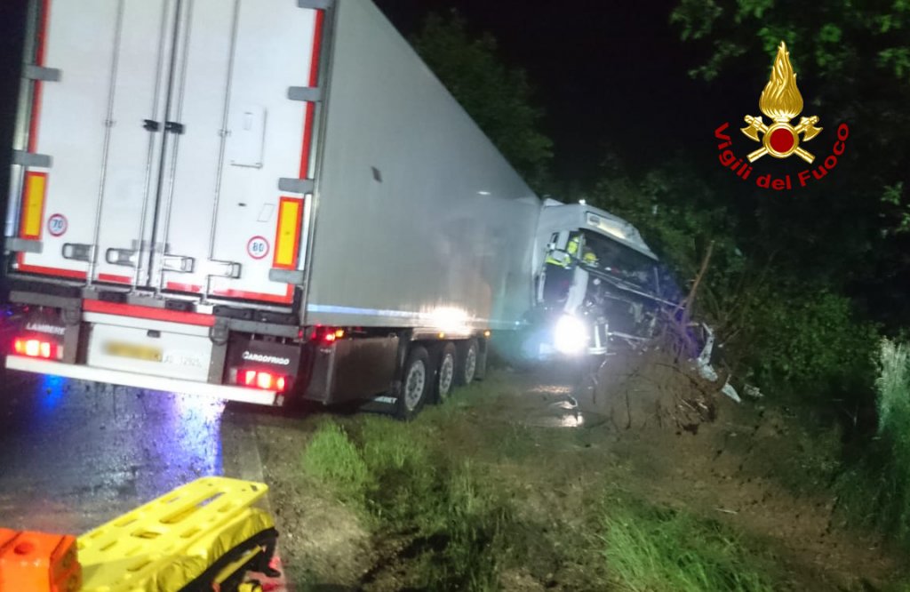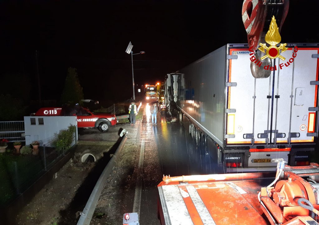 Dalle 20:30 di martedì, i vigili del fuoco hanno operato per quasi 3 ore lungo la SP24 in Via Piazzola a Camisano per un autoarticolato finito fuori strada contro un albero, dopo la perdita di controllo del mezzo da parte del conducente rimasto ferito. I pompieri arrivati da Vicenza con due mezzi tra cui l’autogrù e 7 operatori, hanno messo in sicurezza il mezzo ed estratto il conducente, rimasto incastrato nella cabina di guida. Il ferito è stato preso in cura dal personale sanitario del SUEM, stabilizzato e trasferito in ambulanza in ospedale. Le operazioni dei vigili del fuoco e del soccorso stradale per il recupero dell’autoarticolato sono durate 3 ore e mezza. Poco dopo le 23 l’autoarticolato è stato recuperato.