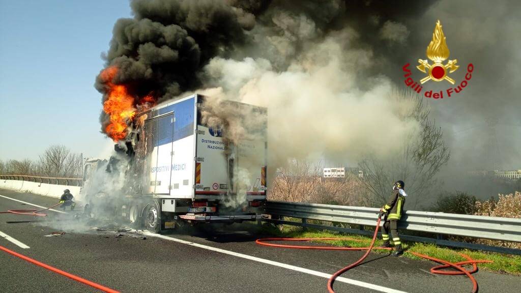 Alle 10:55, i vigili del fuoco sono intervenuti lungo l’autostrada A13 al km 108 poco prima del casello Padova zona Industriale per l’incendio di un camion frigo adibito a trasporti dispositivi medici. Incolume l’autista. I pompieri arrivati con tre automezzi, hanno spento le fiamme del camion, che era vuoto, tranne per il muletto utilizzato per il carico e scarico. Il rogo ha completamente distrutto il mezzo. Le cause dell’incendio di probabile natura elettromeccanica sono al vaglio dei vigili del fuoco. Sul posto il personale ausiliario dell’autostrada e la polstrada. Le operazioni di bonifica dei vigili del fuoco sono in fase di ultimazione.