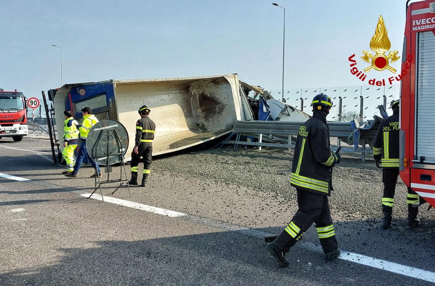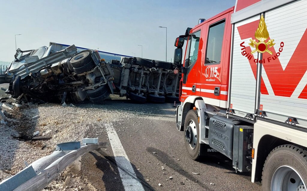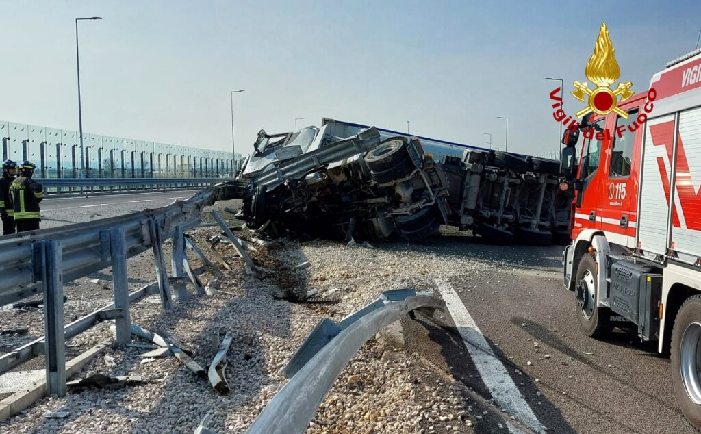 Camion si rovescia sulla Superstrada Pedemontana vicentina: autista ferito