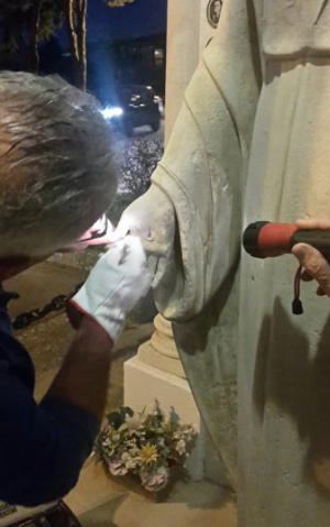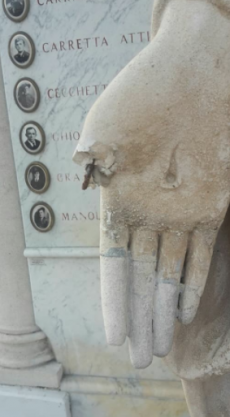 Dopo che dei vandali hanno rotto e fatto sparire il pollice del Cristo, presso il monumento ai caduti di S. Maria, i Fanti della sezione locale si sono adoperati per ripristinare la statua. Grazie alla disponibilità di Claudio Romio e a chi ha donato la pietra ed il materiale per eseguire il lavoro, è stato ripristinato il dito della statua.
