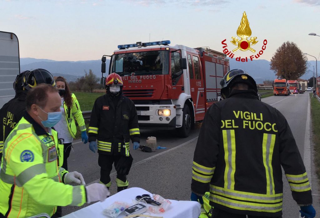 Alle 15:30 circa di oggi, i vigili del fuoco sono intervenuti lungo la provinciale 52 in Via Santa Romana a Nove per un incidente stradale frontale tra un camper e un’autovettura: una persona deceduta e due feriti. I pompieri arrivati da Bassano del Grappa hanno messo in sicurezza i mezzi ed estratto il conducente del camper. Purtroppo nonostante i soccorsi il medico del SUEM ha dovuto dichiarare la morte dell’uomo 71 enne di Romano d’Ezzelino. Ferita la moglie, coetanea dell’uomo, presa in cura dai sanitari e trasferita in ospedale, come la conducente 65 enne della Citroen C3. La polizia stradale ha deviato il traffico ed eseguito i rilievi dell’incidente per ricostruire la dinamica del sinistro. Le operazioni di soccorso dei vigili del fuoco sono terminate dopo circa due ore.