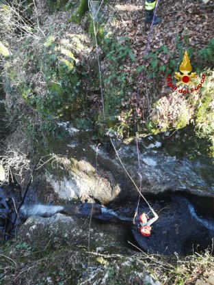 Nel primo pomeriggio i vigili del fuoco sono intervenuti in contrada Visonà a Valdagno per il salvataggio di “Neve”, uno spinone caduto in un burrone profondo una quindicina di metri. L’animale era a spasso con i due padroni quando è scivolata su del muschio finendo nella scarpata, dentro un piccolo ruscello. I pompieri arrivati da Arzignano, hanno calato un operatore SAF (Speleo Alpino Fluviale), che ha raggiunto l’animale. “Neve”, dopo essere stata tranquillizzata, si è fatta imbragare ed è stata recuperata, tornando di nuovo al sicuro con i propri felici padroni. Le operazioni di soccorso sono terminate dopo circa due ore.