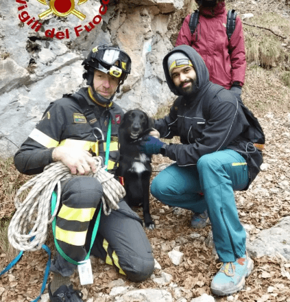 “Smoki” un pastore dei Lagorai a spasso nei boschi, di Valle di Santa Felicità a Romano D’ezzelino i insieme con i propri padroni, forse per rincorrere un animaletto, scivola in un dirupo rimanendo bloccato su uno sperone di roccia: a salvarlo ci hanno pensato i vigili del fuoco.