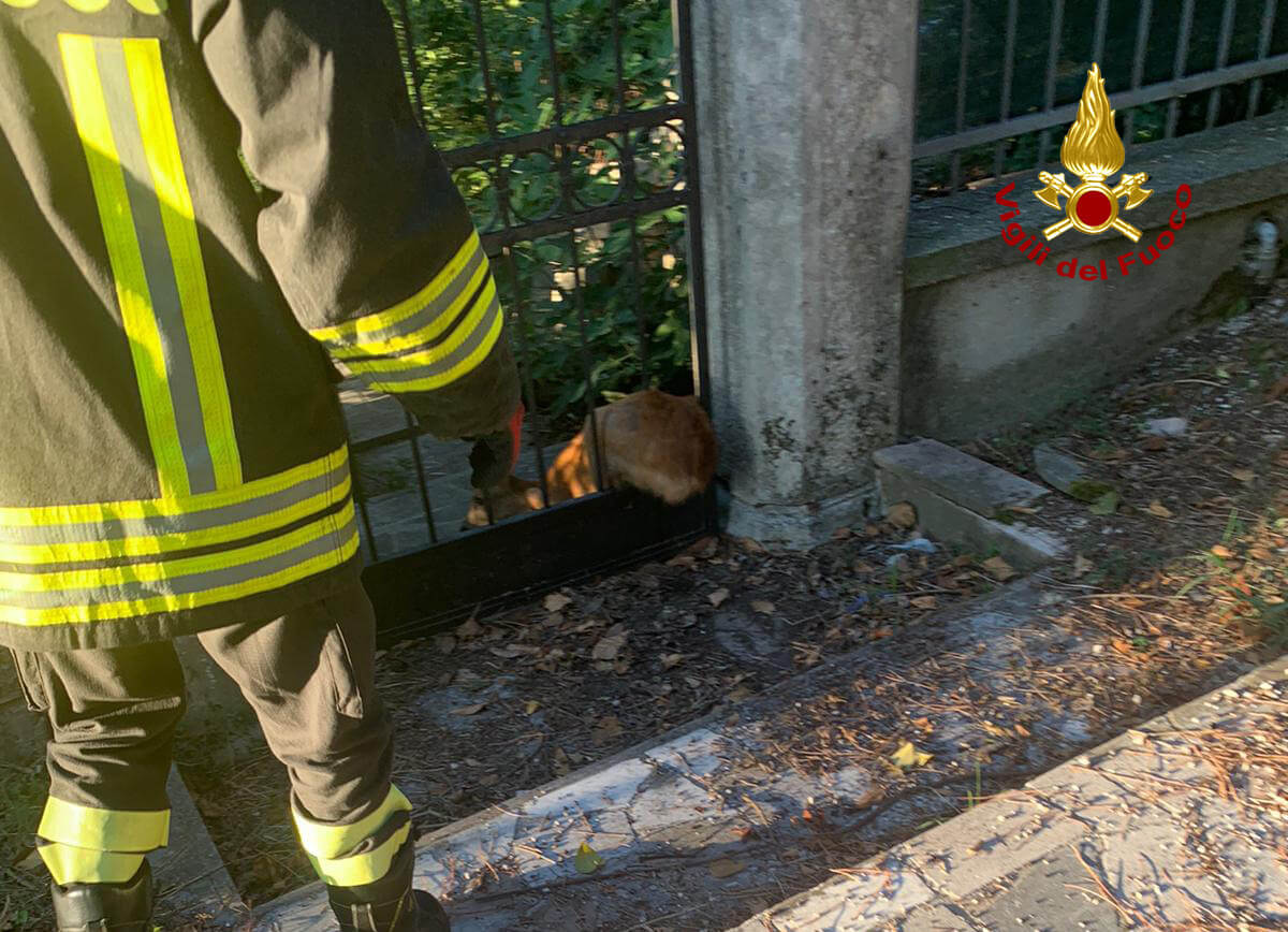 Capriolo rimane incastrato in un cancello: liberato dai pompieri