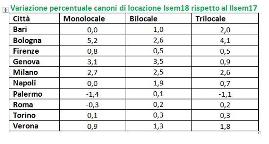 Nel primo semestre del 2018 i canoni di locazione delle grandi città sono in aumento: +1,1% per i monolocali, +1,4% per i bilocali e +1,2% per i trilocali. Su tutte le tipologie si vede un segnale positivo. Tra le città che hanno registrato l’aumento dei canoni più elevato ci sono Bologna (+5,2%, +2,6% e +4,1%) e Milano (+2,7%, +2,5% e +2,6%). Tra le motivazioni la riduzione dell’offerta sul mercato (soprattutto in quelle realtà dove sta crescendo il fenomeno degli affitti turistici) e la migliore qualità della stessa. Infatti, i potenziali locatari sono sempre più esigenti nella ricerca dell’immobile e si evidenzia una maggiore facilità di affitto per le soluzioni di “qualità”, ben arredate, posizionate in zone servite e luminose. La presenza del riscaldamento autonomo è apprezzata perché consente una riduzione dei costi condominiali. I proprietari stanno recependo questa esigenza e la qualità dell’offerta abitativa in locazione è in miglioramento.