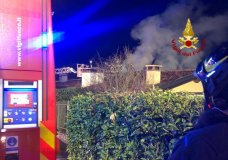 A fuoco tetto di bifamiliare: pompieri in azione