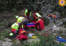 Grave ciclista uscito di strada e scivolato per 50 metri