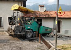 Macchina asfaltatrice contro casa: gravi danni (foto)