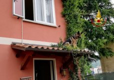 Cane bloccato su una pensilina a 4 metri di altezza: salvato dai pompieri