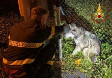 Cucciolo di husky finisce in canale di scolo: salvato dai pompieri