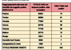 Covid Veneto, 342 nuovi casi e 4 decessi