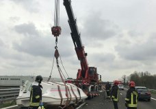 GRISIGNANO – Motoscafo di 10 metri si rovescia in A4, disagi e rallentamenti