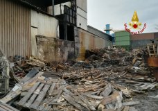 THIENE – Incendio in una fonderia, bancali a fuoco